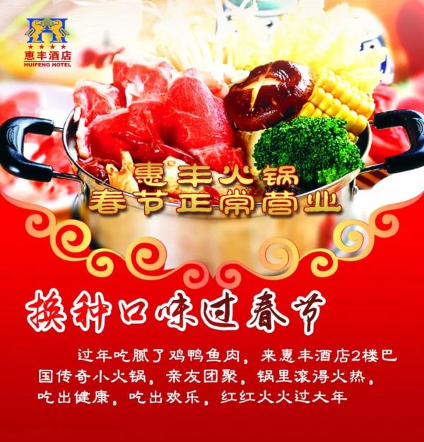 春節(jié)吃膩了雞鴨魚(yú)肉,換個(gè)口味兒吧,東北人都習(xí)慣了春節(jié)吃傳統(tǒng)菜,今年換一種春節(jié)假期的打開(kāi)方式,吃火鍋兒更熱鬧。惠豐酒店始終堅(jiān)持優(yōu)選原料、品牌用油,原產(chǎn)地直供,春節(jié)來(lái)惠豐巴國(guó)火鍋品嘗一下極富口感的鮮美涮品,一樣的真材實(shí)料,不一樣的新鮮食材,熱氣騰騰的鍋底、營(yíng)養(yǎng)豐富的鮮美配菜,和親朋好友相聚,實(shí)在是一大享受。
