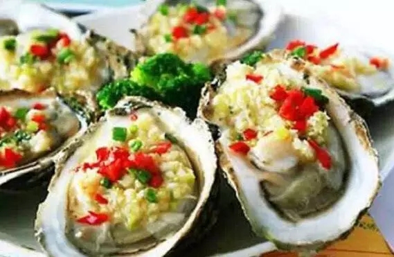 生蠔——是大型的牡蠣,肉青白色,質(zhì)地柔軟細嫩。歐洲人稱“海洋的瑪瑙“,可以補充人體健康必須的鋅等微量元素。烤生蠔將蒜蓉、姜末、醬等佐料放入剛剛撬開的生蠔內(nèi),再直接放到火上烤熟即可,極大限度地保證了蠔肉的新鮮和風味。