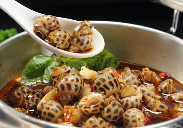 野豬肉瘦肉率高、口感好,富含各種氨基酸和粗纖維,尤其是亞油酸含量高,保持了野豬原有的肉質(zhì)鮮嫩、野味濃郁的風(fēng)味特點。大花螺燜野豬肉、野豬肉燜蟹肉,豐盛的美食,絕對不可錯過。