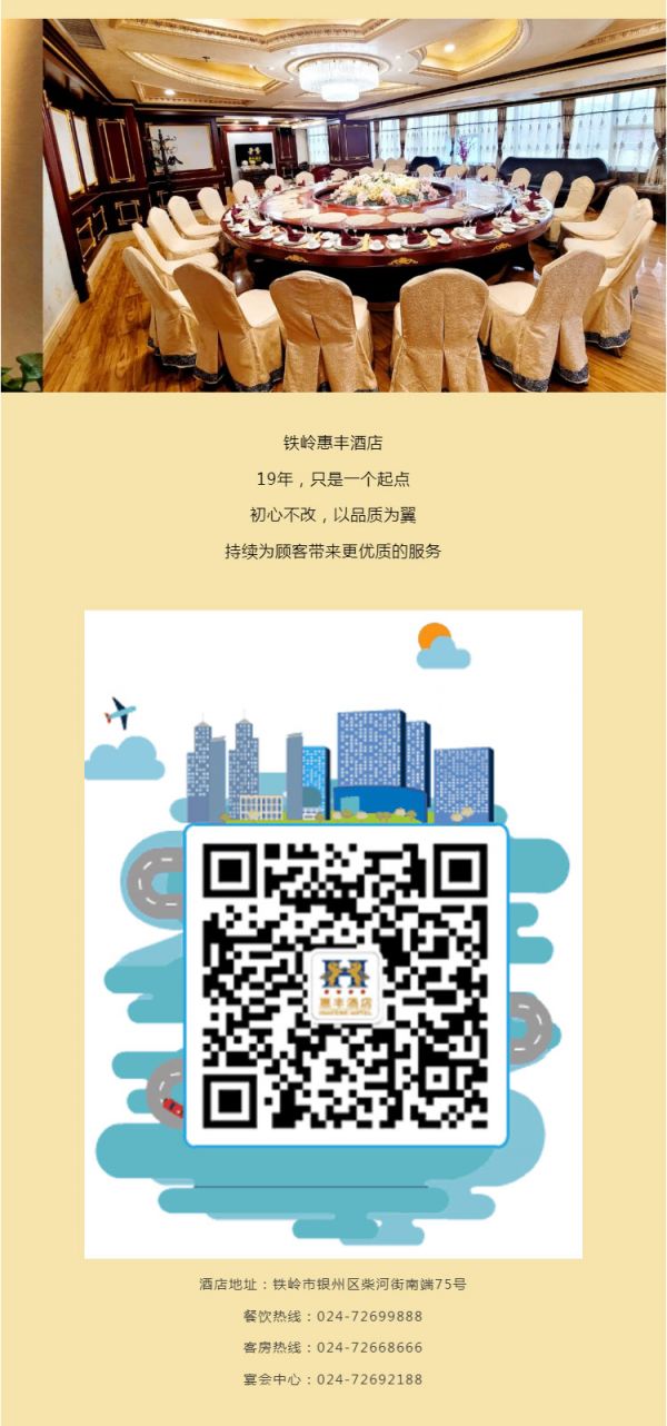 您好,歡迎來(lái)到鐵嶺惠豐酒店! 今天是: 登陸 / 注冊(cè)