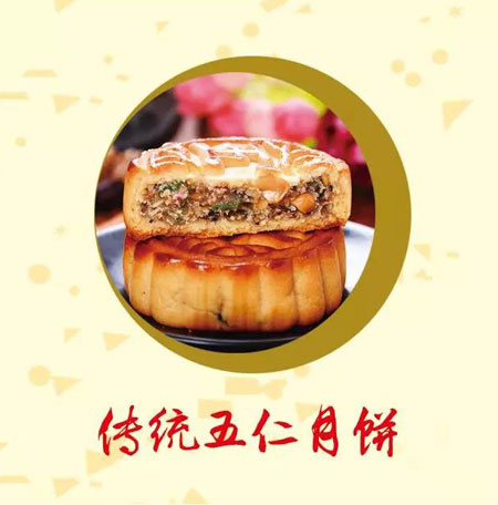 五仁月餅是中國(guó)傳統(tǒng)糕點(diǎn)之一,在中秋節(jié)各式月餅中最為著名?;葚S五仁月餅配料考究、皮薄餡多、味美可口。月餅花紋和字跡清晰,形狀端正,有多種新鮮果仁香味。