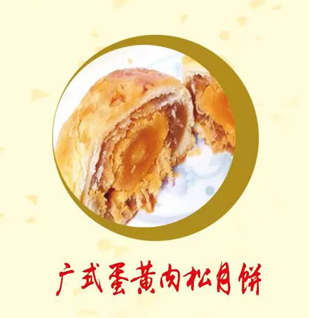 廣式蛋黃肉松月餅是中國(guó)久負(fù)盛名的傳統(tǒng)小吃月餅品種之一, 在中秋節(jié)各式月餅中極為著名。它具有配料考究、皮薄餡多、味美可口,綿軟帶酥的特色。